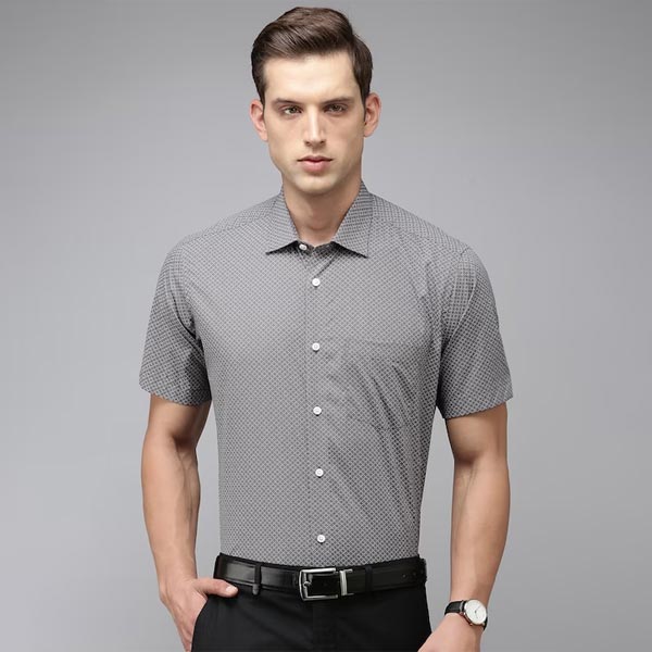 Formal & Casual shirtGrey geometric printed opaque Formal shirt, has a spread collar, button placket, 1 patch pocket, short regular sleeves, straight hem